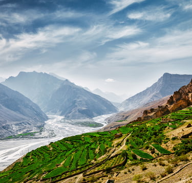 Travel back from Kaza to Kalpa with scenic views of the Spiti and Sutlej rivers.